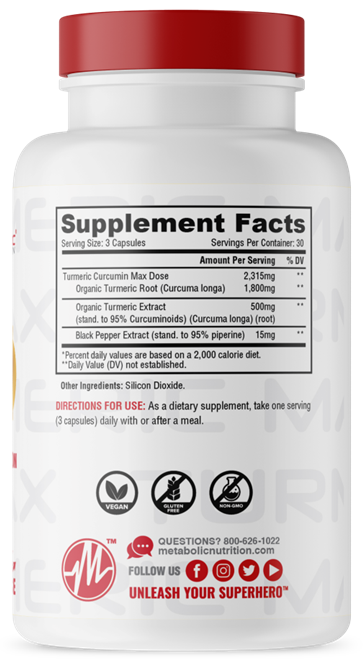 | Turmeric Curcumin Max Dose | 2,315 mg |
